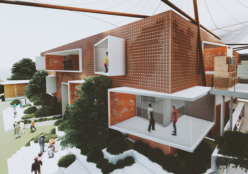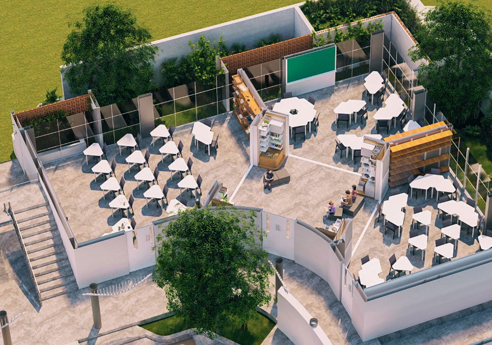 The school forms a visual threshold between modern functional design and a grounded earthy architecture with the use of wire cut & porotherm bricks and concrete structures. They blend into the landscape beyond. The robust locally sourced materials are sustainable and weather gracefully.